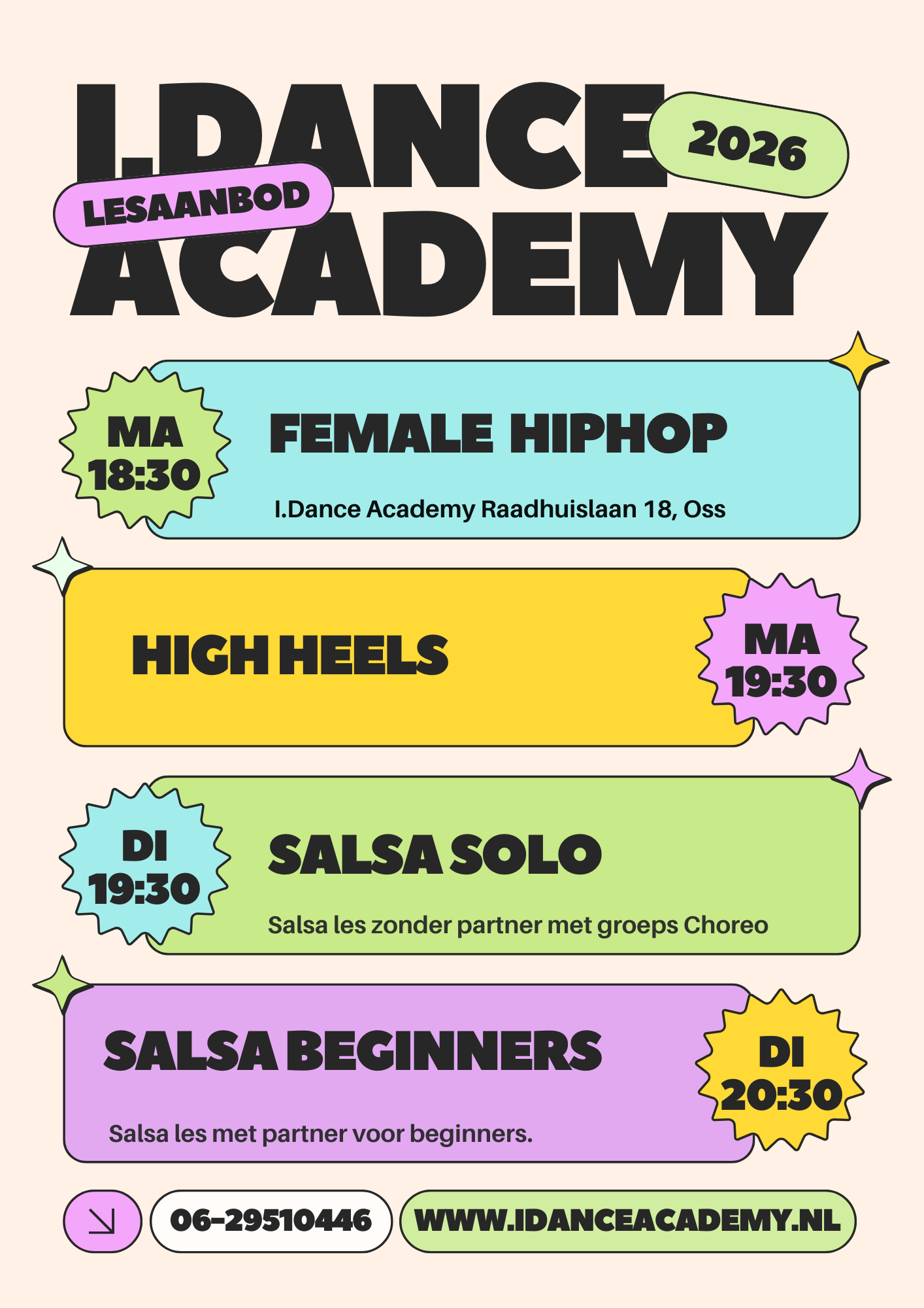 Schrijf je in voor een proefles Meer info Female Hiphop meer info High heels Meer info salsa solo meer info salsa beginners